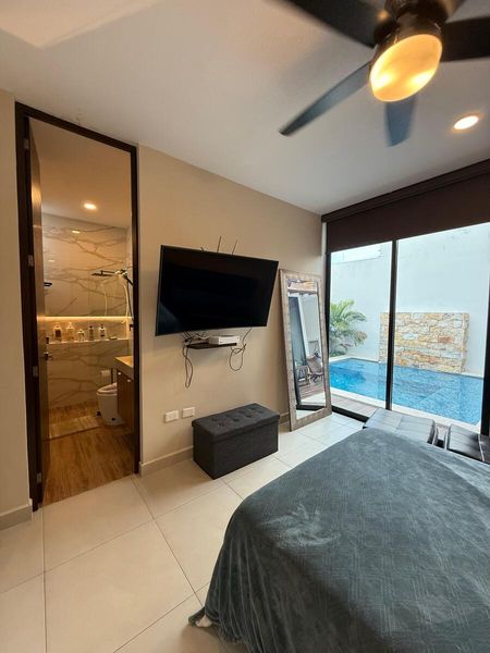 - 1 Recámara Principal con amplio closets vestidor y baño completo igual salida a la alberca