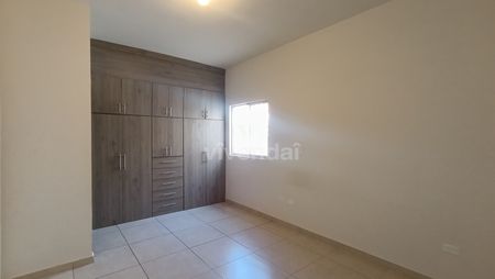 Se renta cómoda casa de una planta en Fraccionamiento Terralta. Cuenta con cochera sin techar para 2 autos, sala comedor integrados, con cancel y acceso a patio trasero, cocina integral, lavandería con patio de tendido exterior, 3 habitaciones, la principal con baño al interior, las secundarias con baño compartido.