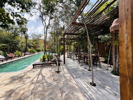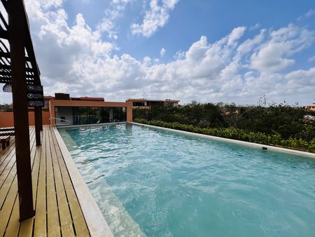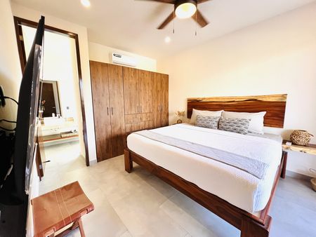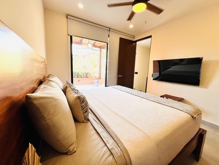 Cerca del centro, en Avenida cómoda que conecta fácilmente a las varias zonas de Tulum, departamento duplex en renta.Ubicado en el nuevo complejo residencial Aldea Savia, una comunidad tranquila, segura y con una variedad de amenidades como: