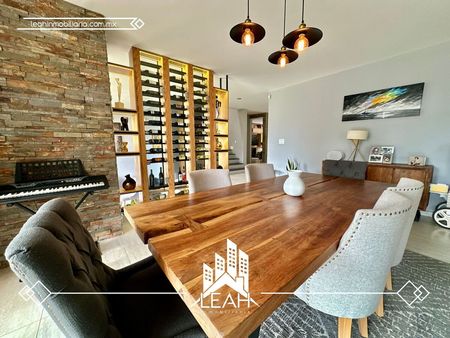 - Terraza de ensueño techada, equipada con asador, horno de pizza y una mesa parota para 12 personas, ideal para pasar tiempos memorables con familia y amigos.