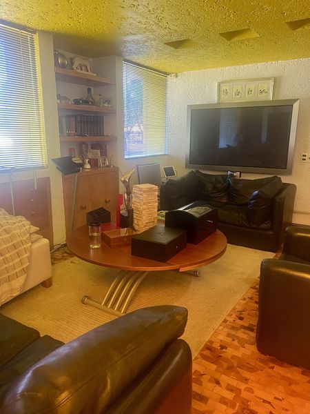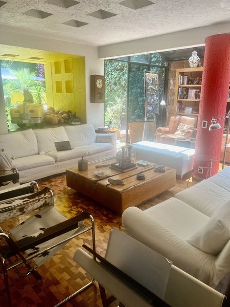 Casa construida por el Arquitecto Legorreta en Bosque de las Lomas, excelente casa, cuenta con varias salas, cuarto de TV, comedor de muy buen tamaño, con hermosa vista, una terraza con asador y jardín con entrada directa, cocina equipada, con alacena de muy buen tamaño, con dos recámaras pero opción a dos más, la recámara principal es de muy buen tamaño, cuenta con un vestidor grande, una oficina, y área de TV, su baño y un sauna, una segunda recámara con baño y clóset, y otra que se hizo vestidor, la cual se puede ser la 3er. Recámara y en el área de servicio tiene un gym muy completo, tiene cuarto se servicio grande con baño y clóset y un área con un baño completo donde se podría poner otra cama, tiene lugar para 3 coches techado, bodegas y en la entrada cuenta con una fuente muy bonita, vale la pena conocerla