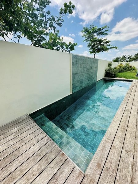 - Alberca de piedra sukabumi; con medio baño, equipada con luces, cascada, nado contracorriente y calentador eléctrico