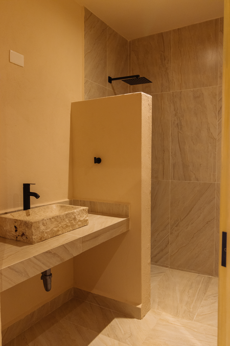 Lavabos de piedra artesanales en todos los baños.