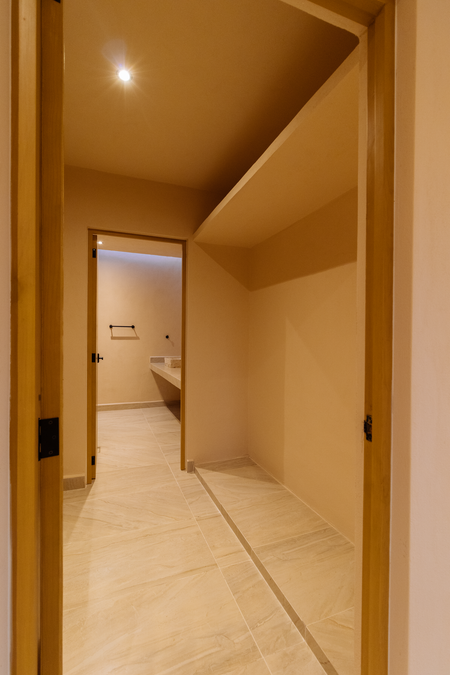 Recámara principal con closet vestidor y baño completo.
