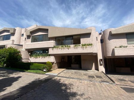 Casa en conjunto Placet, muy cerca de Paseo Interlomas, ideal para familia, ubicada en zona tranquila. Consta de 3 recámaras cada una con su baño, la principal con vestidor, sala comedor, sala de T.V., amplia cocina con un desayunador acogedor, amplios espacios muy iluminados y cómodos. Tiene bonitos jardines comunes y alberca para disfrutar perfectamente.