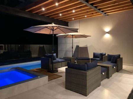 La alberca y el jacuzzi que se integra perfecto a esa área para que todos convivan y observen o se deleiten de la gran vista.