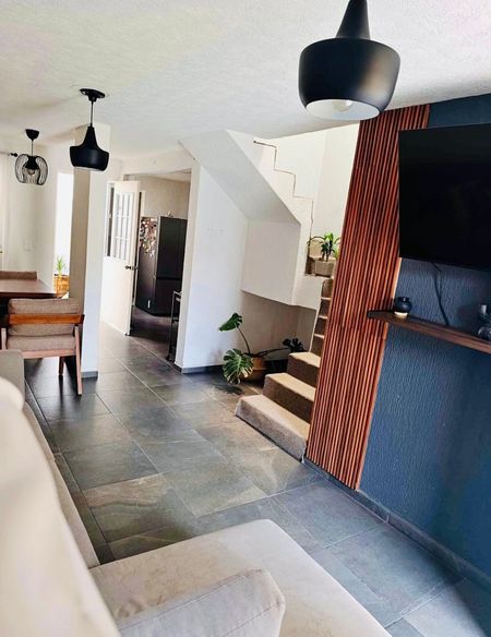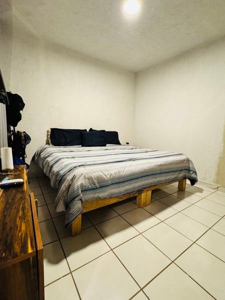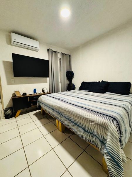 Casa en *Fraccionamiento Real del Valle* en Tlajomulco, construida en dos niveles, dentro de coto, que se encuentra frente a parque, con portón eléctrico y acceso controlado. (COTO GUADALUPE), consta de: PLANTA BAJA, cochera para un auto, sala-comedor, cocina, baño completo y patio de servicio. PLANTA ALTA, dos recámaras, sala de TV y baño completo. Adicionales: La casa originalmente tenía una recámara en la planta baja y se modificó para ampliar la cocina, cuenta con, vitropiso, protecciones, cocina de material, aire acondicionado en cuarto principal y boiler. Metros de terreno: 74.25 Metros de construcción: 89.29.