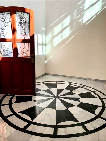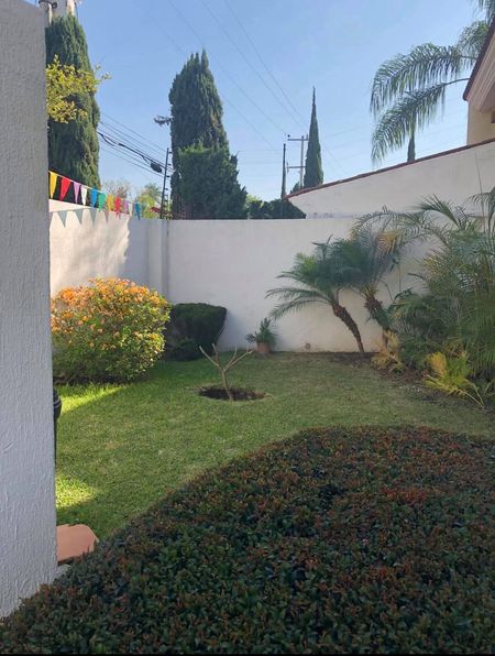 Cuenta con estacionamiento para 6 autos y jardín exterior. En planta baja: recibidor, sala, comedor, antecomedor, cocina amplia, estudio, cuarto de lavado y cuarto de servicio con baño completo.