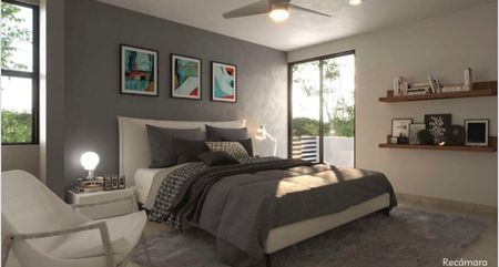 Recamara principal con closet, baño y balcón