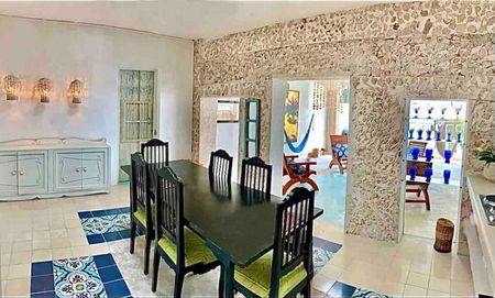 Preciosa casa estilo colonial restaurada y amueblada en el centro de Mérida en el Barrio de Santiago. Totalmente remodelada con el más exquisito gusto. Manteniendo detalles como puertas, pisos y muebles originales de cedro.