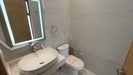 Baños y cocina completamente cubiertos en porcelanato de gran formato.