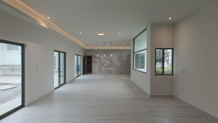 La propiedad cuenta con cochera completamente techada y preparación para portón eléctrico para tres autos grandes, al interior recibidor con cubo de escalera en doble altura, medio baño, cocina abierta, comedor y sala con acceso directo al jardín con barra y tarja en terraza, baño completo en exterior, con cuarto de servicio o bodega, lavandería techada y amplio cuarto de alacena.