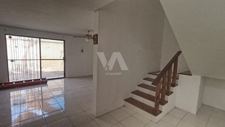 Cuenta con cochera sin techar para 1 auto, recibidor con medio baño, sala comedor abiertos, cocina con espacio para ante comedor, pequeño jardín, área de lavado semi techada y cuarto de servicio con baño completo que se accede por una escalera metálica de caracol.