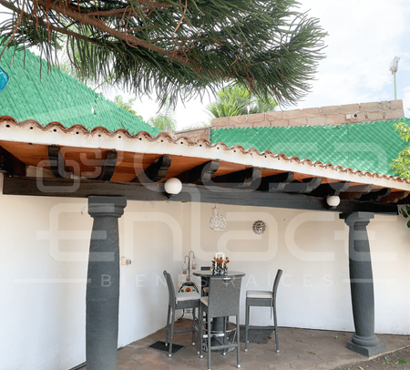 En el exterior, la propiedad invita al descanso con su alberca y chapoteadero, equipados con caldera y paneles solares, rodeados de un jardín propio, dos fuentes y una terraza techada ideal para convivencias al aire libre. El estacionamiento tiene capacidad para 4 autos.
