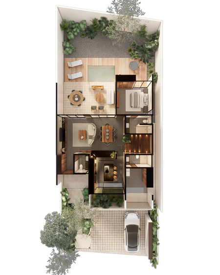 -Jardín interior con vista a la cocina