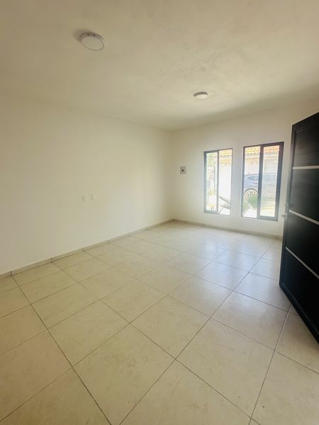 sala, cocina integral, comedor, 3 recamaras la principal con baño propio, las recámaras secundarias comparten baño, garaje para un auto, cisterna de 8000 litros, area de lavado, área de jardín y alberca.