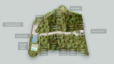 Los terrenos van de 1,003 m² a 1,123 m² y están rodeados por un muro perimetral que garantiza privacidad y seguridad. El acceso principal se encuentra sobre Fontana Pura con torre de vigilancia y un acceso secundario para servicios sobre Fontana Cuca. El complejo dispone de cámaras de vigilancia en exteriores e interiores y urbanización completa, con calles empedradas y una iluminación cálida en árboles y senderos.