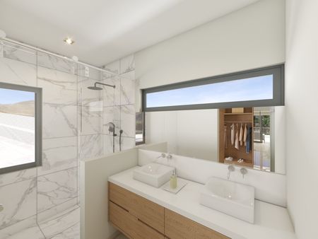 • 5 Baños completos con vanities, espejos y canceles de cristal templado
