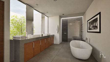 Baño principal con doble ovalin, amplia regadera y tina