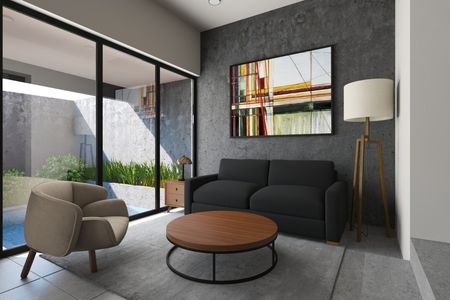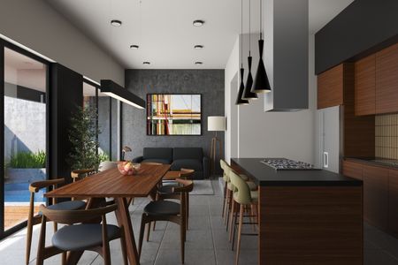 40 m² de jardín con ventanales que integran la sala y comedor, creando un ambiente amplio y armonioso.