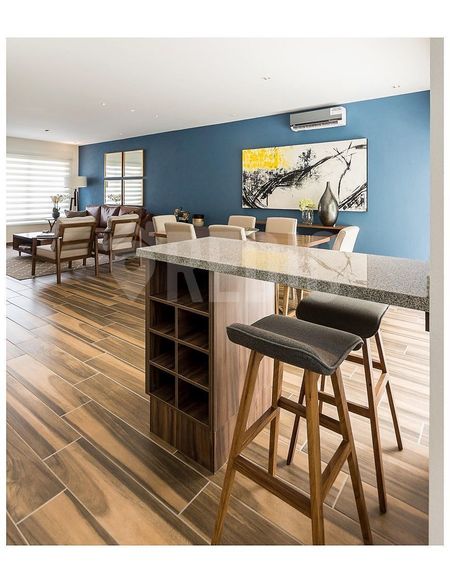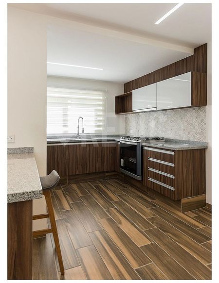 SALA, COMEDOR, COCINA EQUIPADA EN GRANITO, MEDIO BAÑO PARA VISITAS,PATIO, PASILLO DE SERVICIO Y ÁREA DE LAVADO EN PARTE EXTERIOR CUBIERTA.