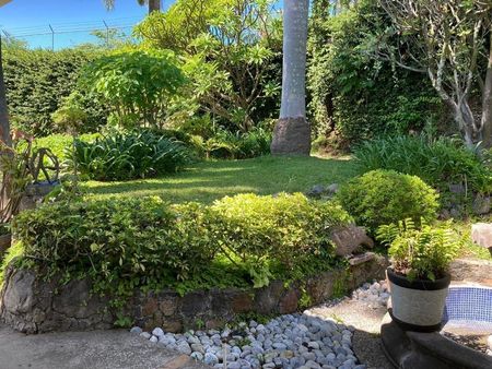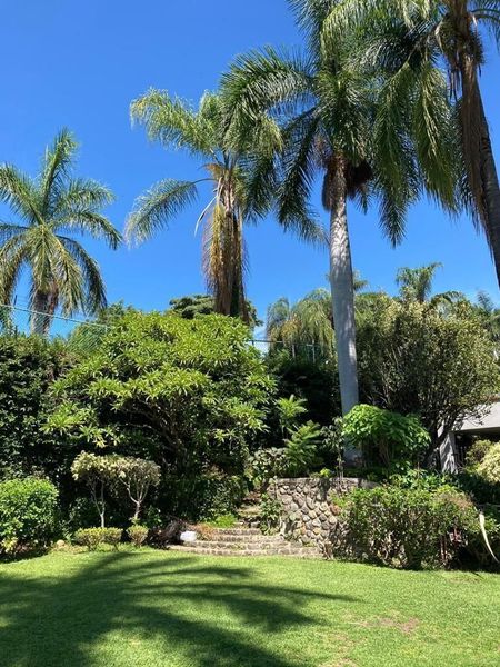 Amplio jardín en 2 niveles con pequeño bar con barra y tarja