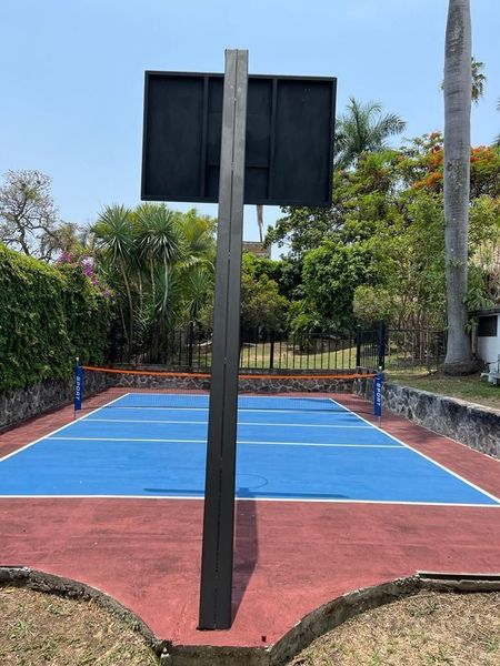 Cancha de pickeball y canasta de basquet.