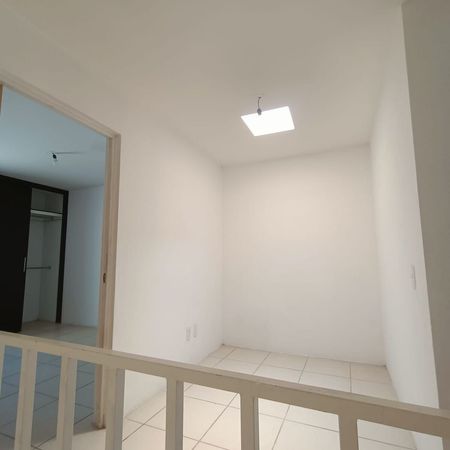 Casa en el Fraccionamiento Puerta Serena, con vigilancia 24/7, planta baja con sala, comedor, cocina integral con granito, patio de servicio, medio baño , estudio que pudiera funcionar como tercer recámara y cochera para un auto. En planta alta cuenta con distribuidor y dos recámaras con clóset ( Cada recámara cuenta con su propio baño). El coto cuenta con amplias áreas verdes, salón de eventos y juegos infantiles.