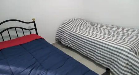 Recámara secundaria con 2 camas individuales, baño completo y vestidor con closet