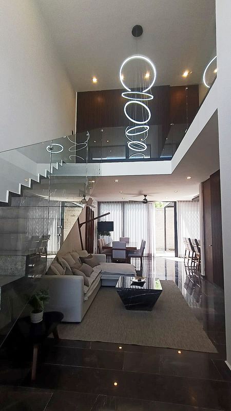La sala es moderna, muy cómoda y te invita a descansar. Su estilo Nórdico Minimalista, te va a encantar. El comedor es para 8 comensales de gusto exquisito.
