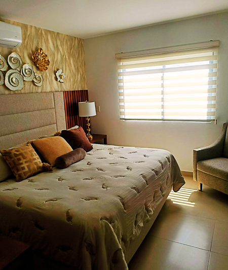 -3 recámaras amplias, cada una con baño propio y clóset.