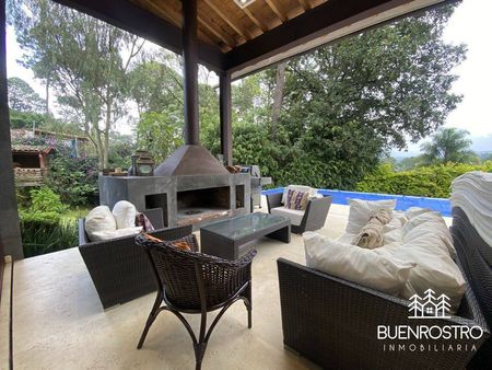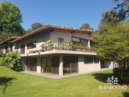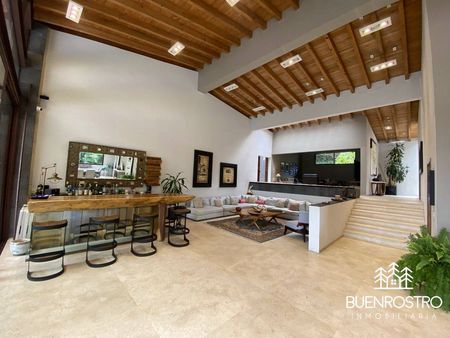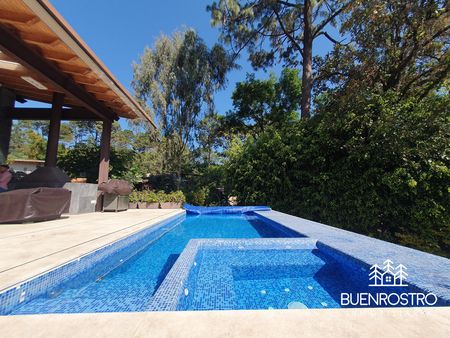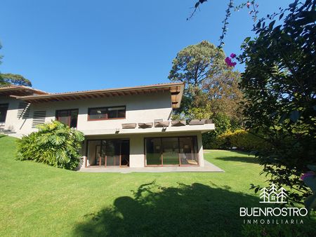 Casa estilo moderno en Avándaro con gran jardín y alberca, diseñada para disfrutar al máximo en compañía de familia y amigos. Rodeada de un entorno natural y silencioso, ofrece una agradable vista al bosque y espacios pensados para todas las edades.