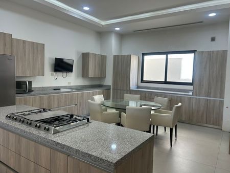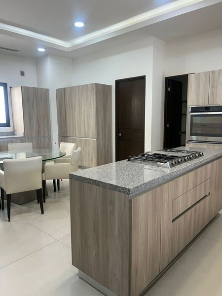 Casa en renta completamente equipada en esquina con 4 rec. Cada una con su baño y walk-in closet. De 3 plantas, sótano con amplio, cuarto de juegos y alberca. Family, paneles solares, cisterna, cochera para 3 autos.