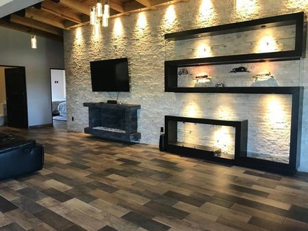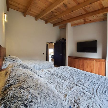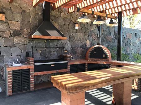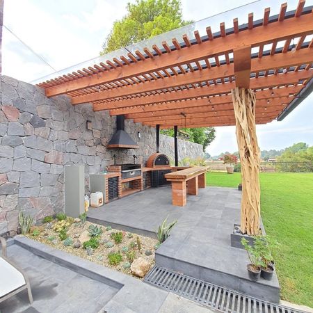 La casa cuenta con tres recamaras, la principal con chimenea, cocina equipada, bar, sala interior, sala exterior, terraza, asador, jacuzzi, área de juegos, estacionamiento techado y área de lavado.