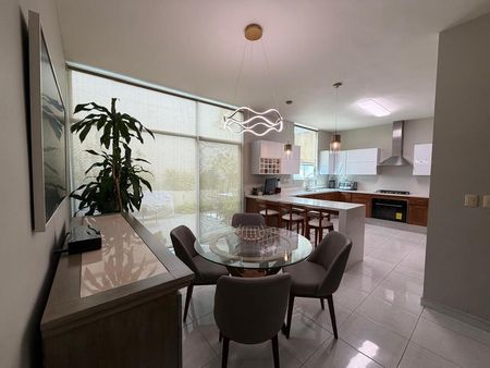 Hermosa casa totalmente amueblada y decorada 3 recámaras c/u con baño vestidor, cocina muy amplia. Equipada con antecomedor, sala grande, comedor para 10 personas, cochera doble.