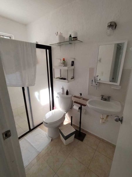 Persianas, ventiladores, aires acondicionados en recamaras y comedor tinaco, boiler eléctrico, estufa, refrigerador, sala, comedor, closets sencillos sin puertas, cocina con gavetas.