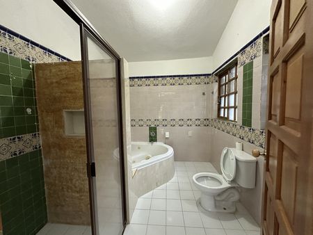 La casa cuenta con 3 habitaciones, la principal con vestidor y baño completo con tina de hidromasaje.