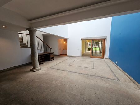 En la planta baja, encontrarás un estudio o recámara de visitas con baño completo, además de una amplia sala con bar y cava, ideal para disfrutar en familia o con amigos. Desde aquí se contemplan las mejores vistas: un jardín de más de 1,000 m², con imponentes árboles y una fuente de cantera que crea un ambiente sereno y espectacular.