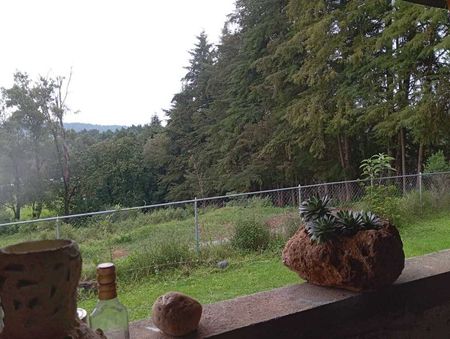 La propiedad cuenta con un espacioso jardín, ideal para actividades al aire libre. Disfruta de una vista impresionante de los campos de Acatitlán y del Cerro de Monte Alto. La zona es muy tranquila, permitiéndote salir a caminar y explorar el río cercano, que se encuentra a pocos metros de la propiedad. Además, puedes cruzar el puente y llegar a Acatitlán, a la altura del Colegio Los Caracoles.