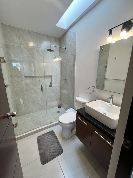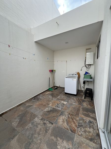 En planta baja, sala/ comedor, cocina integral, cuarto de lavado semi techado y terraza. Cochera con portón eléctrico para dos autos.