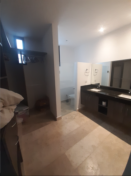 Recamara principal con closet vestidor y baño completo