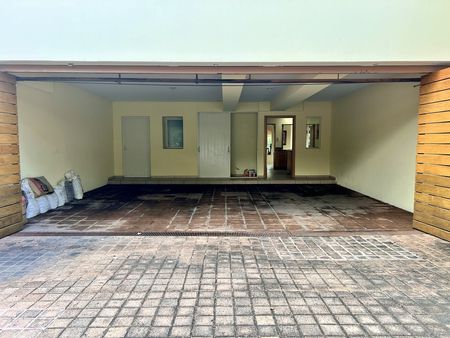 Cochera cerrada y techada para tres autos, más lugar para estacionar 6 más.