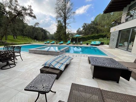 - Amplia alberca con jacuzzi y camastros
