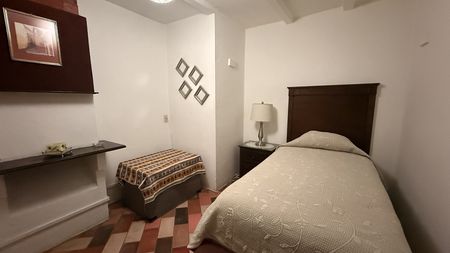 - Recámara principal: Cama matrimonial y baño privado.