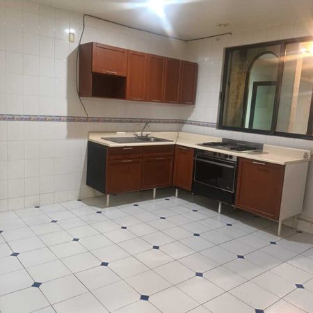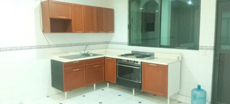 Cocina integral equipada espaciosa con amplias encimeras y gabinetes
