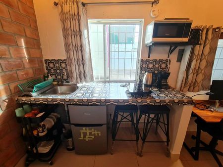 - Cocineta con parrilla de inducción, refrigerador pequeño marca Hisense, lavabo y todo lo necesario para dos personas.