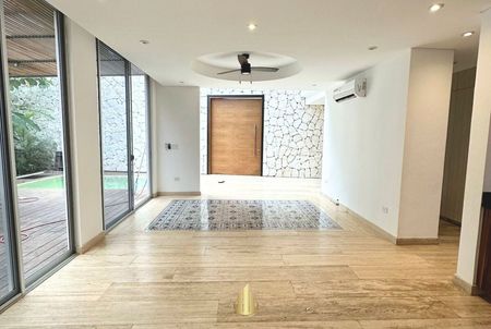 Ubicada en Cholul, Yucatán, esta casa de dos plantas destaca por su diseño arquitectónico contemporáneo con una majestuosa fachada de piedra y amplios espacios llenos de luz natural.