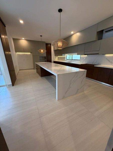 -Recámara principal con walk-in closet e isla, baño con lavabo doble regadera y tina