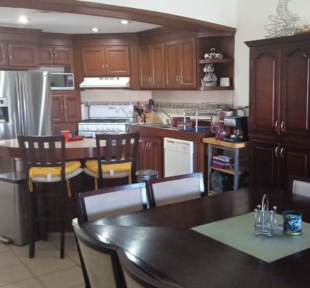 Sala, comedor amplios y confortables con decorado estilo california