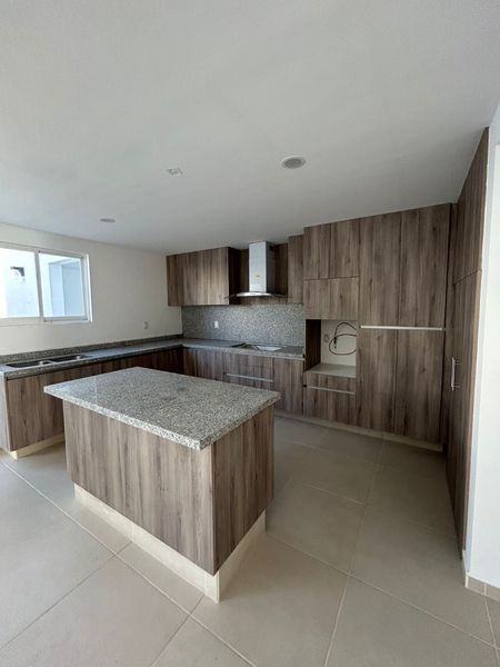 Sala, comedor, 1/2 baño, cocina equipada con isla, cuarto de lavado techado, jardín y cochera